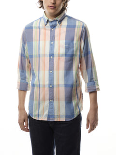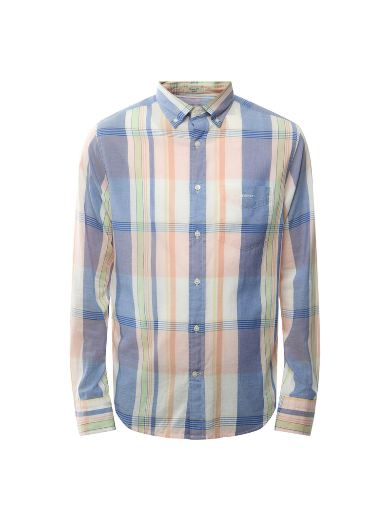 Crafted from 100% cotton, this shirt is cut for a regular fit and adorned with an all-over indigo madras checked pattern. Detailed with a GANT logo embroidered at the chest pocket, the design features a button-down collar, adjustable cuffs, a curved hem and a box pleat with our signature locker loop at the back.