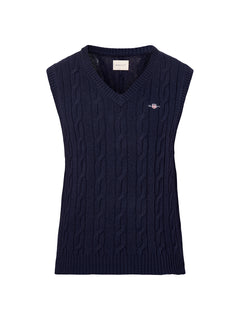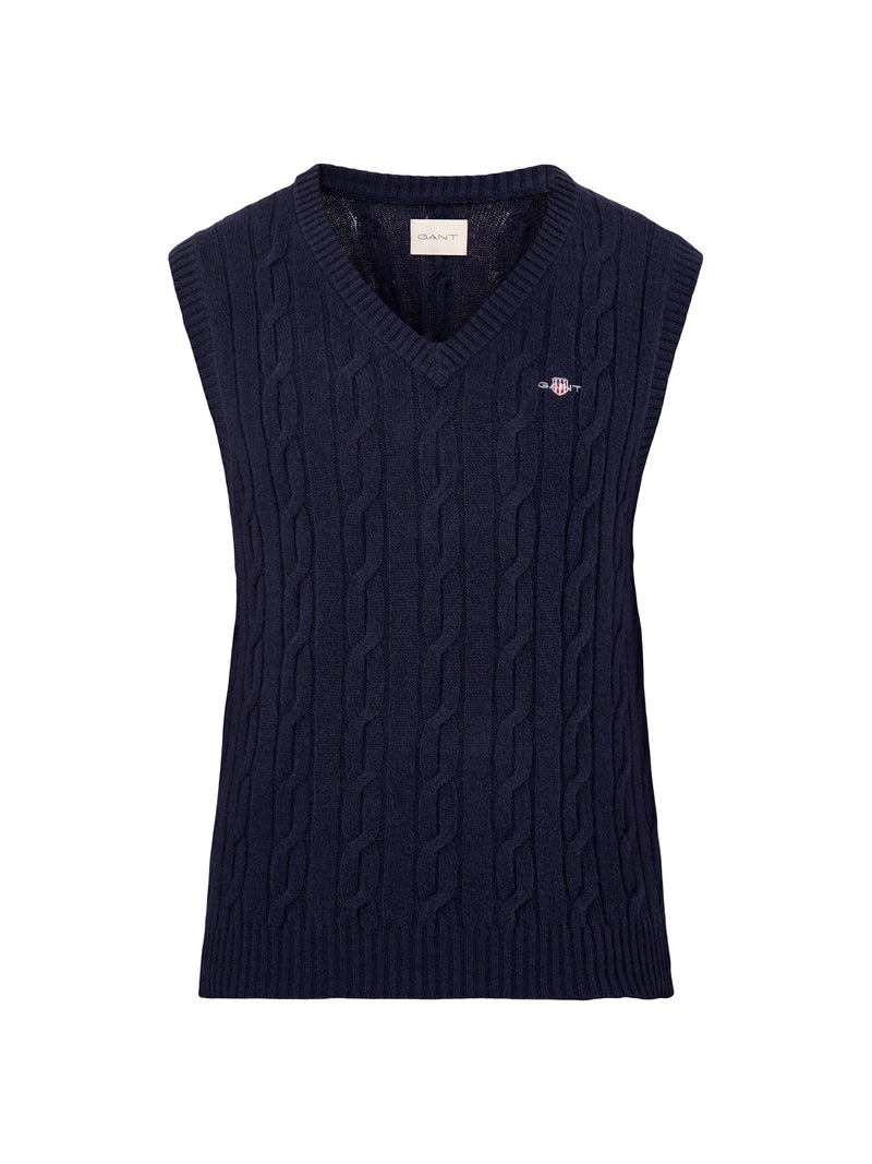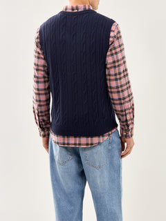 Lambswool Cable Vest Evening Blue