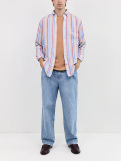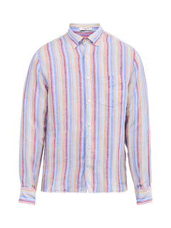 This linen multistripe shirt offers a stylish and breathable option for warm weather. The linen material provides a lightweight and comfortable fit, while the multistripe design adds a touch of sophistication. Stay cool and fashionable with this versatile wardrobe staple.