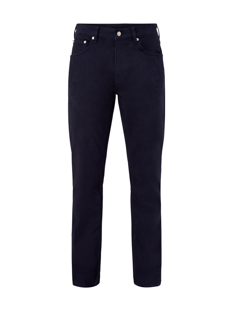 Crafted in cotton moleskin for a velvety finish, these GANT jeans deliver warmth and structure. The deep blue tone pairs effortlessly with knitwear and boots, making them a staple for autumn layering. A clean silhouette that transitions easily from day to evening.