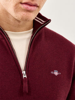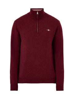 Superfine Lambswool Half-Zip Jumper Bordeaux Melange