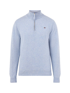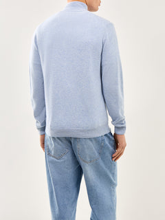 Superfine Lambswool Half-Zip Jumper Light Blue Melange