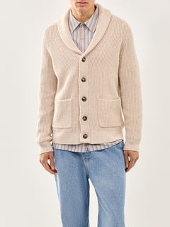Wool-Blend Shawl Collar Cardigan Light Beige