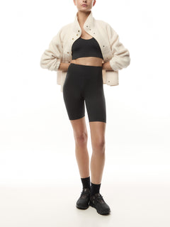 Feel cute and cool in Girlfriend Collective's FLOAT High Waisted Bike Shorts in black. Made from 90% recycled plastic bottles, these sustainable shorts are sweat-wicking, quick-drying and ultra-lightweight. Wear yours with t-shirts, sports bras and tanks.