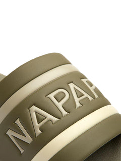 The NAPAPIJRI Stream Sandals feature a comfortable slider design with a prominent logo strap for a stylish and sporty look. These sandals offer easy wear and a casual vibe, perfect for everyday use during warmer seasons.