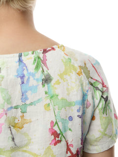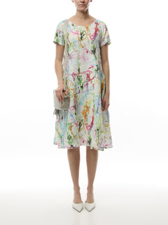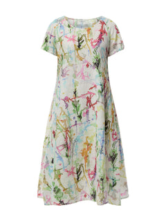 Short Sleeve A Line Printed Linen Dress