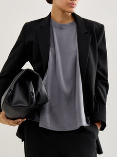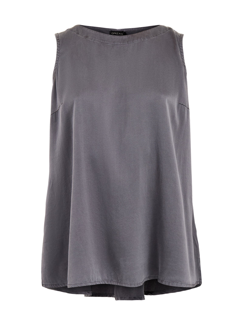 The Silk Sleeveless Top by Grizas is made from lustrous silk in black-silver tones. With its relaxed drape and minimalist silhouette, it’s perfect for layering under tailoring or evening separates.