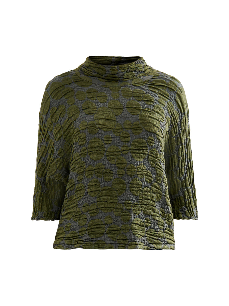 The Spot Cowl Neck Top by Grizas is crafted from a soft textured blend patterned with tonal spots. The relaxed fit and cowl neckline lend effortless sophistication for day-to-evening wear.