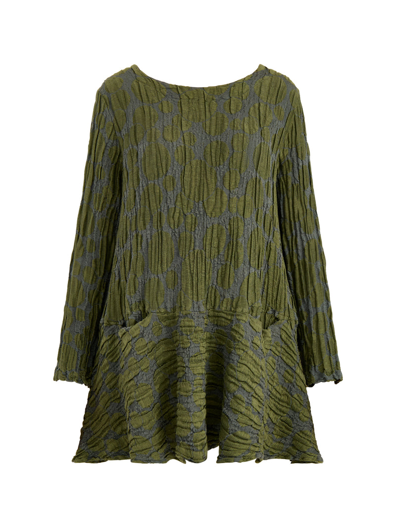 The Spot Two Pocket Tunic by Grizas is cut from lightweight fabric with a subtle textured spot finish. Designed with practical front pockets, it offers comfort and easy elegance for layered styling.