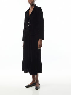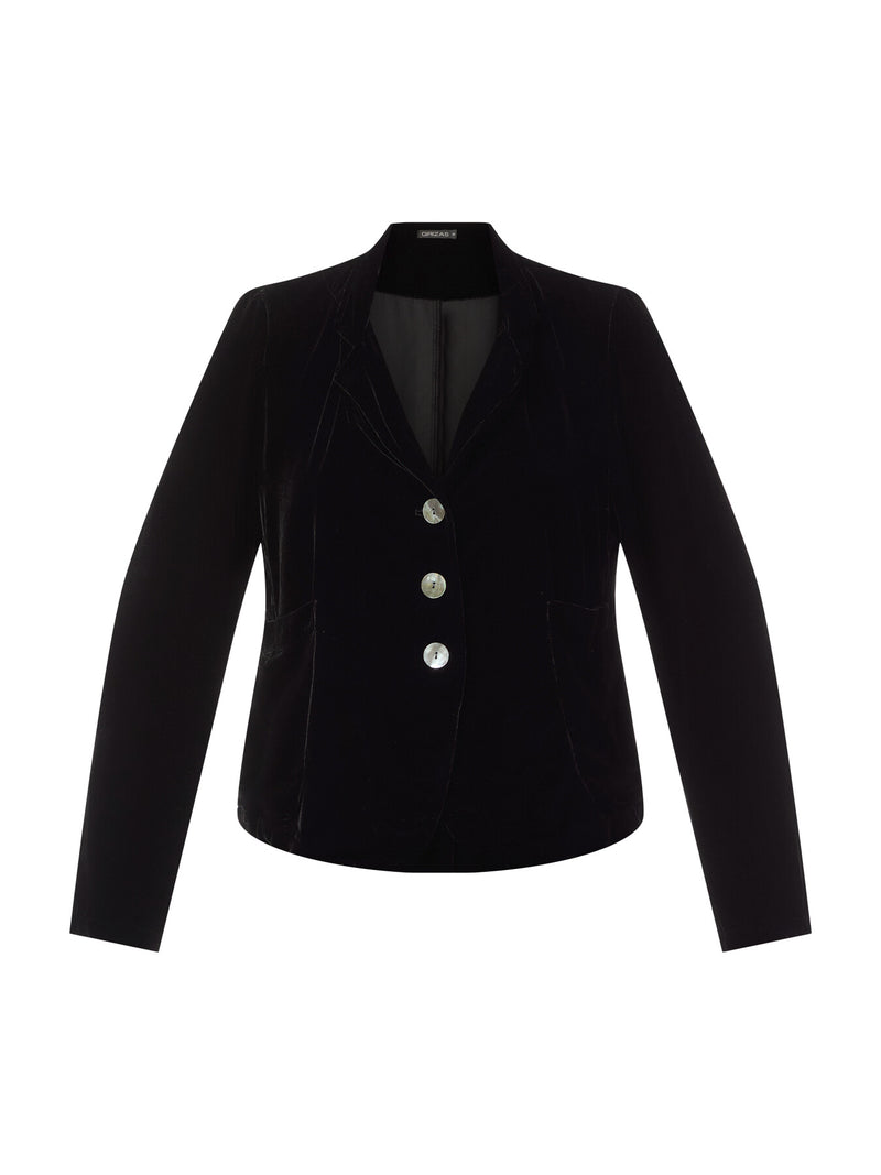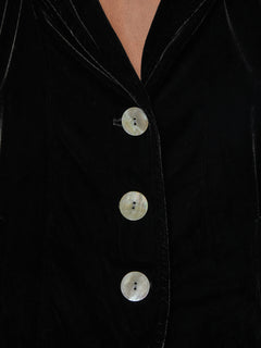 This refined 3 piece button jacket is guaranteed to elevate your wardrobe, constructed from a soft velevt this jacket incorporates a short, structured and relaxed fit.