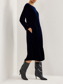 The Velvet Long Sleeve Dress by Grizas is crafted from rich, lustrous velvet in royal blue. Cut to a relaxed silhouette with gentle drape, it moves effortlessly with the body - a refined choice for evening occasions or elevated daytime styling.