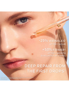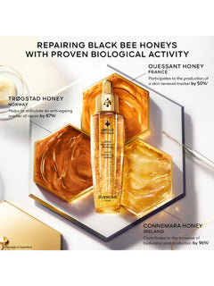 Deep repair from the first drops. Result of 15 years of research and relying on 9 patents and 9 publications, the new-generation Youth Watery Oil Serum draws its repairing power from three honeys produced by the black bee, a species selected for its rarity and the power of its honeys. Thanks to its deep diffusion texture, the serum targets the heart of the epidermis.