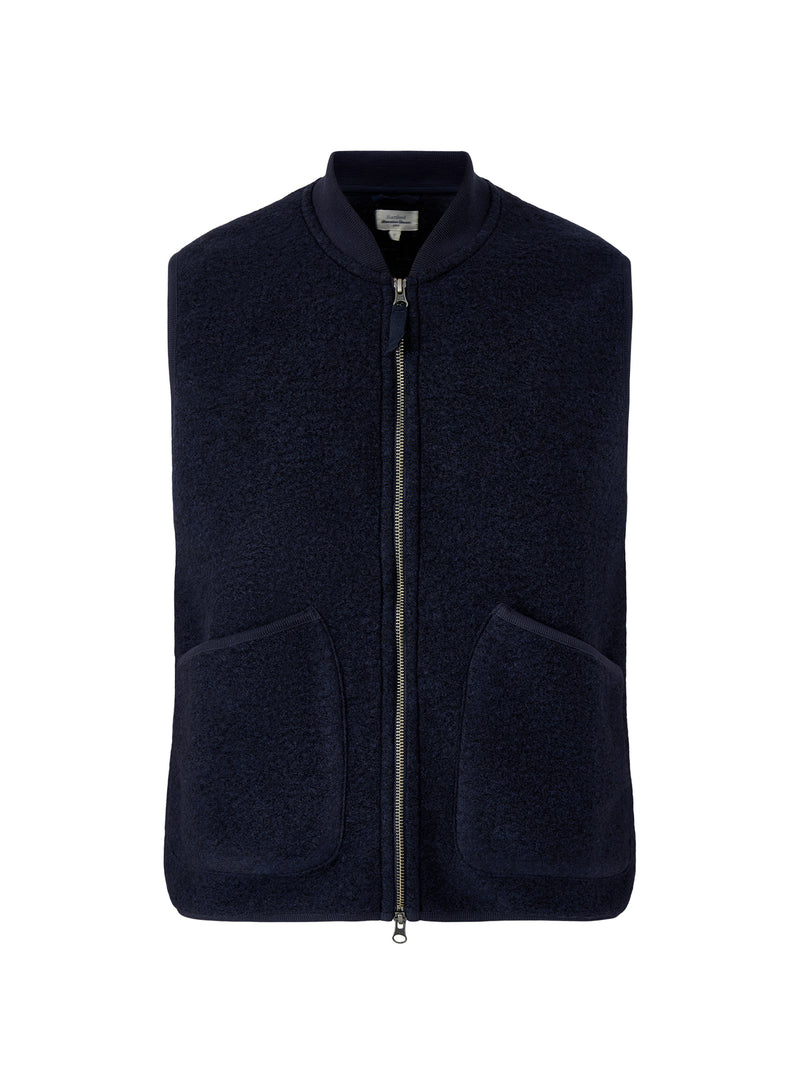 The boiled knitted vest by Hartford is finished in textured wool for warmth and layering versatility. Cut with a relaxed fit, it works well over shirts or under coats. A functional wardrobe piece with enduring appeal.