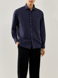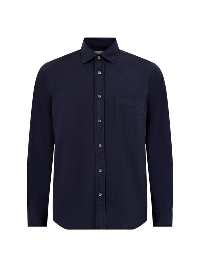 The Paul Pat twill shirt by Hartford is crafted in peach-finish cotton for a soft handfeel. Designed with a button-down collar and tailored fit, it bridges casual and smart styling. A versatile shirt that works from weekday to weekend.