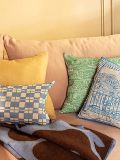 Limited Edition Linen Cushion Rose Pink & Royal Blue 45 x 45 cm
