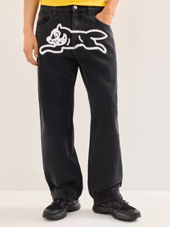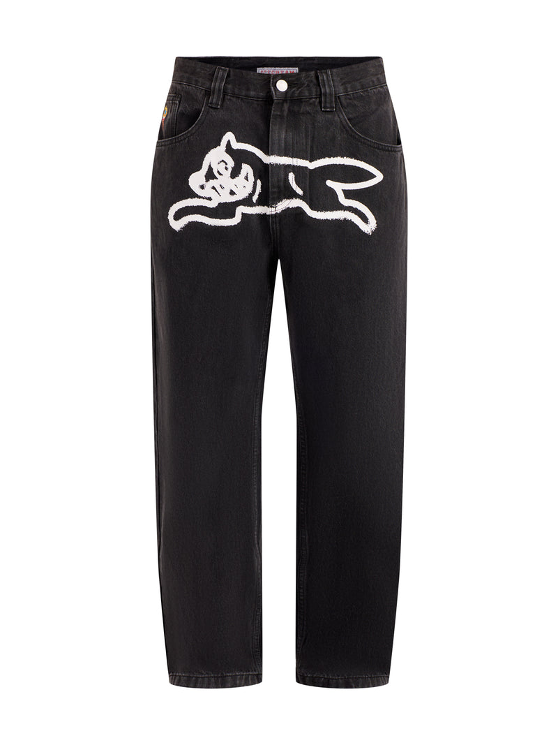 Spray Paint Running Dog Denim Pant Black