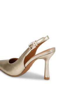 The Adina Slingback Heel features an embossed heel that adds subtle texture and visual interest. Its ankle fastening ensures a secure and comfortable fit, combining style with practicality for versatile wear.