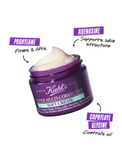 - Ingredient List: Super Multi Corrective Soft Cream: Aqua / Water,glycerin,hydroxypropyl Tetrahydropyrantriol,niacinamide,alcohol Denat.,dimethicone,butylene Glycol,propylene Glycol,betaine,coco-caprylate/caprate,squalane,caprylyl Methicone,ammonium Acryloyldimethyltaurate/vp Copolymer,hydroxyethylpiperazine Ethane Sulfonic Acid,inonotus Obliquus (mushroom) Extract,adenosine,capryloyl Glycine,menthoxypropanediol,methyldihydrojasmonate,palmitoyl Tetrapeptide-7,pal