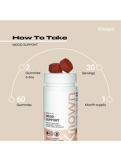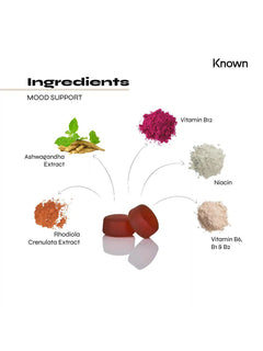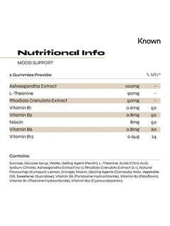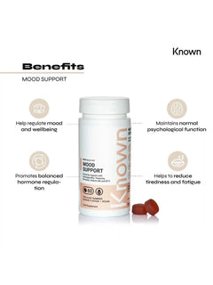 Promote a balanced mood with Known Nutrition’s Orange Flavoured Mood Support Gummies. Formulated with Ashwagandha, Theanine, Rhodiola and a complex of B vitamins to help support balanced hormones, reduce fatigue and promote a healthy nervous system.