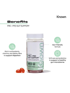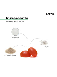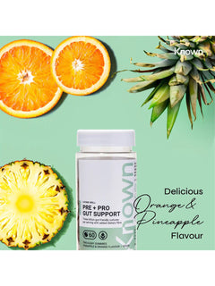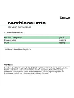 Welcome to a new era of gut health with Known Nutrition’s Pre+Pro Gut Support Gummies, a delicious fusion of Pineapple and Orange flavours that not only tantalise your taste buds but also fortify your digestive wellness. Each serving is a powerhouse of 3 billion Bacillus Coagluan probiotic cultures, meticulously formulated to nourish your gut microbiome.
