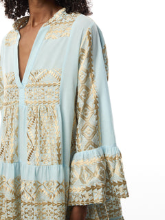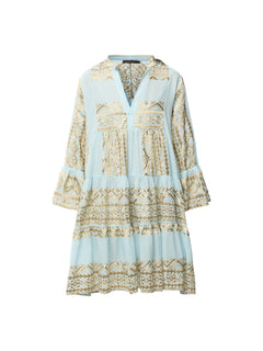 Ciel/GoldCiel/Gold Cotton Classic Triangle 3/4 Sleeve Mini Dress