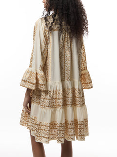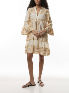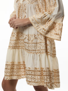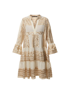 Natural/GoldNatural/Gold Classic Triangle 3/4 Sleeve V-Neckline Mini Dress