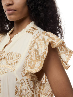 Classic Triangle Frill Cap Slv Round Neck Maxi Dress