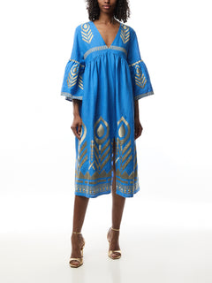 Blue Raf/GoldBlue Raf/Gold Linen Feather Midi Dress
