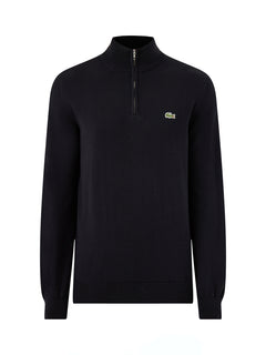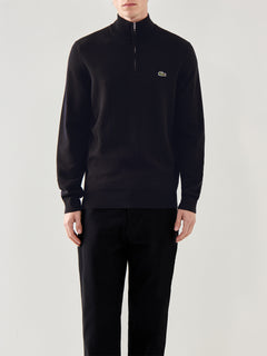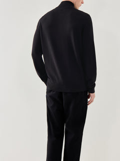This black half-zip knitwear is crafted from organic cotton, offering a soft and breathable feel. Its sustainable fabric choice ensures comfort while supporting eco-friendly practices. The half-zip design provides versatile styling options and easy layering for cooler days. Ideal for casual or smart-casual wear, this knitwear combines practicality with conscious fashion.