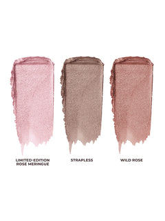 - Ingredient List: "Rose Meringue: DIMETHICONE, TRIMETHYLSILOXYSILICATE, MICA, CALCIUM ALUMINUM BOROSILICATE, SYNTHETIC WAX, SILICA, POLYETHYLENE, STEAROXYMETHICONE/DIMETHICONE COPOLYMER, STEARYL DIMETHICONE, CAPRYLYL METHICONE, CALCIUM SODIUM BOROSILICATE, OCTADECENE, COPERNICIA CERIFERA (CARNAUBA) WAX (COPERNICIA CERIFERA CERA/CIRE DE CARNAUBA), POLYSILICONE-11, DISTEARDIMONIUM HECTORITE, CAPRYLIC/CAPRIC TRIGLYCERIDE, PENTAERYTHRITYL TETRA-DI-T-BUTYL HYDROXYHYDROCINNAMATE, PROPYLENE CARBONATE, POLYHYDROXYSTEARIC ACID, TIN OXIDE, BRASSICA CAMPESTRIS (RAPESEED) SEED OIL, RICINUS COMMUNIS (CASTOR) SEED OIL, DICALCIUM PHOSPHATE, SODIUM HYALURONATE, POLYGONUM TINCTORIUM LEAF EXTRACT, HYDROGENATED CASTOR OIL, RUBUS IDAEUS (RASPBERRY) LEAF EXTRACT, ROSMARINUS OFFICINALIS (ROSEMARY) LEAF EXTRACT, SYNTHETIC FLUORPHLOGOPITE. +/- (MAY CONTAIN/PEUT CONTENIR) TITANIUM DIOXIDE (CI 77891), IRON OXIDES (CI 77491, CI 77492, CI 77499). Strapless: DIMETHICONE, MICA, TRIMETHYLSILOXYSILICATE, SILICA, SYNTHETIC WAX, POLYETHYLENE, STEAROXYMETHICONE/DIMETHICONE COPOLYMER, STEARYL DIMETHICONE, DICALCIUM PHOSPHATE, CAPRYLYL METHICONE, CALCIUM SODIUM BOROSILICATE, OCTADECENE, COPERNICIA CERIFERA (CARNAUBA) WAX (COPERNICIA CERIFERA CERA/CIRE DE CARNAUBA), POLYSILICONE-11, DISTEARDIMONIUM HECTORITE, CAPRYLIC/CAPRIC TRIGLYCERIDE, PENTAERYTHRITYL TETRA-DI-T-BUTYL HYDROXYHYDROCINNAMATE, PROPYLENE CARBONATE, POLYHYDROXYSTEARIC ACID, BRASSICA CAMPESTRIS (RAPESEED) SEED OIL, RICINUS COMMUNIS (CASTOR) SEED OIL, SODIUM HYALURONATE, HYDROGENATED CASTOR OIL, POLYGONUM TINCTORIUM LEAF EXTRACT, RUBUS IDAEUS (RASPBERRY) LEAF EXTRACT, BHT. +/- (MAY CONTAIN/PEUT CONTENIR) TITANIUM DIOXIDE (CI 77891), IRON OXIDES (CI 77491, CI 77492, CI 77499), BLUE 1 LAKE (CI 42090). Wild Rose: DIMETHICONE, MICA, TRIMETHYLSILOXYSILICATE, SILICA, SYNTHETIC WAX, POLYETHYLENE, STEAROXYMETHICONE/DIMETHICONE COPOLYMER, STEARYL DIMETHICONE, CAPRYLYL METHICONE, CALCIUM TITANIUM BOROSILICATE, CALCIUM SODIUM BOROSILICATE, OCTADECENE, COPERNICIA CERIF