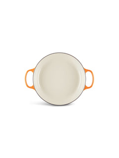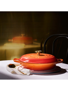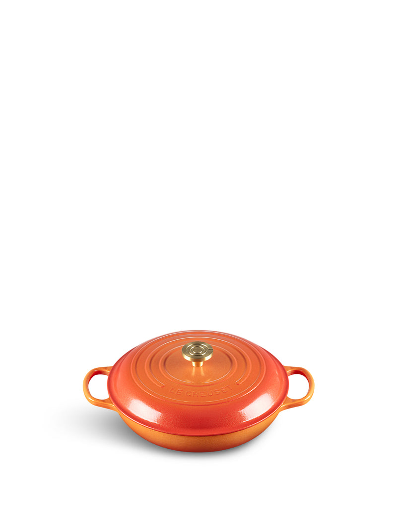 The Signature Shallow Casserole in Flamme Dorée combines classic design with modern functionality. This