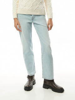 The Ribcage Straight Ankle Jean offers a flattering high-rise fit that accentuates the waist while providing a straight leg silhouette. Designed to hit just above the ankle, these jeans combine classic style with a modern edge, making them versatile for both casual and dressier looks. Crafted from quality denim, they ensure comfort and durability throughout the day.