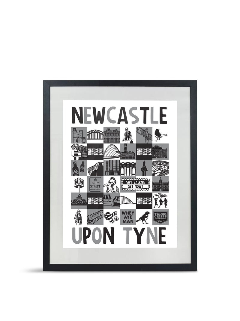 Newcastle Grey Square A3 Print With Frame