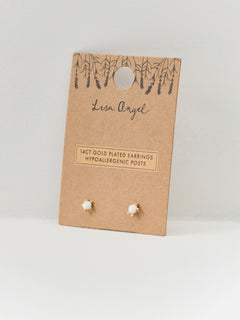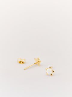 Opal Stone Turtle Stud Earrings Gold