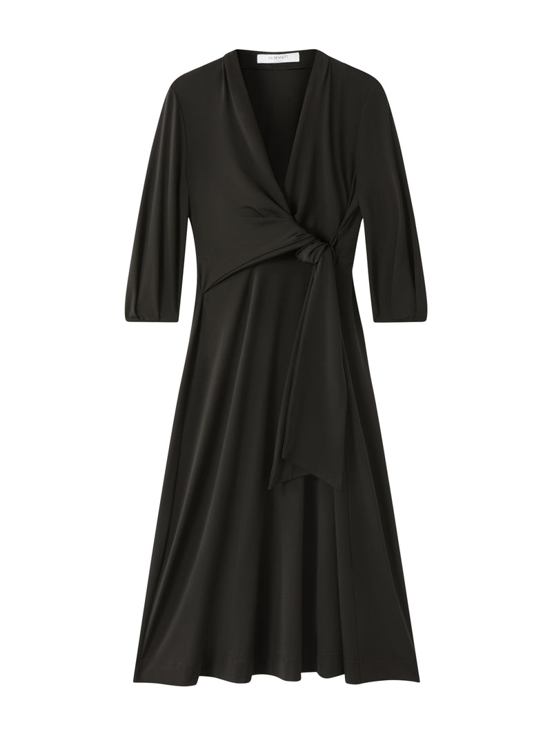 Aiper Black Polyester V-neck Jersey Dress with Tie Front