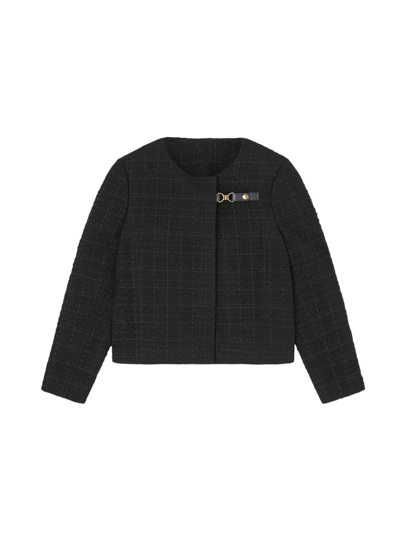 Arden Black Tweed Recycled Fabric Buckle Detail Jacket