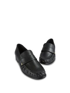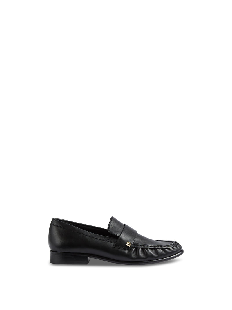 The Black Adira loafer is crafted from high-quality nappa leather, known for its soft and supple texture. This stylish loafer features a distinctive stud design, combining comfort with a sophisticated look suitable for various occasions.