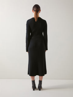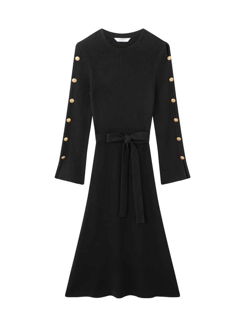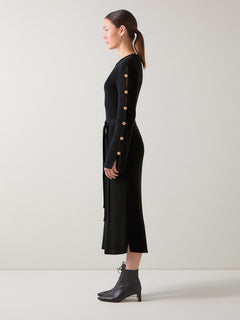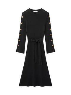 Mirren Black Plain Organic Cotton Shank Button Jumper Dress with Self Covered Belt