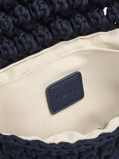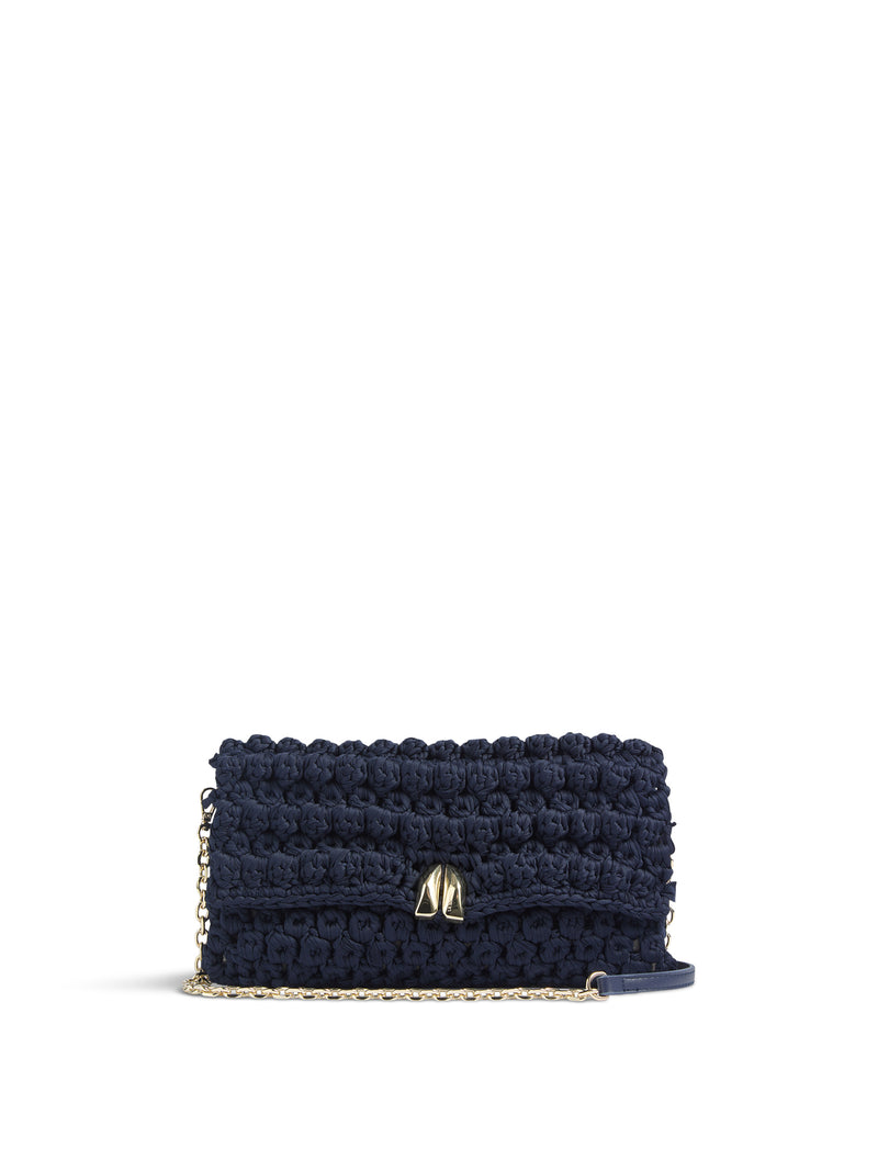 Blue Larna Navy Crochet Oloid Clutch Bag