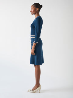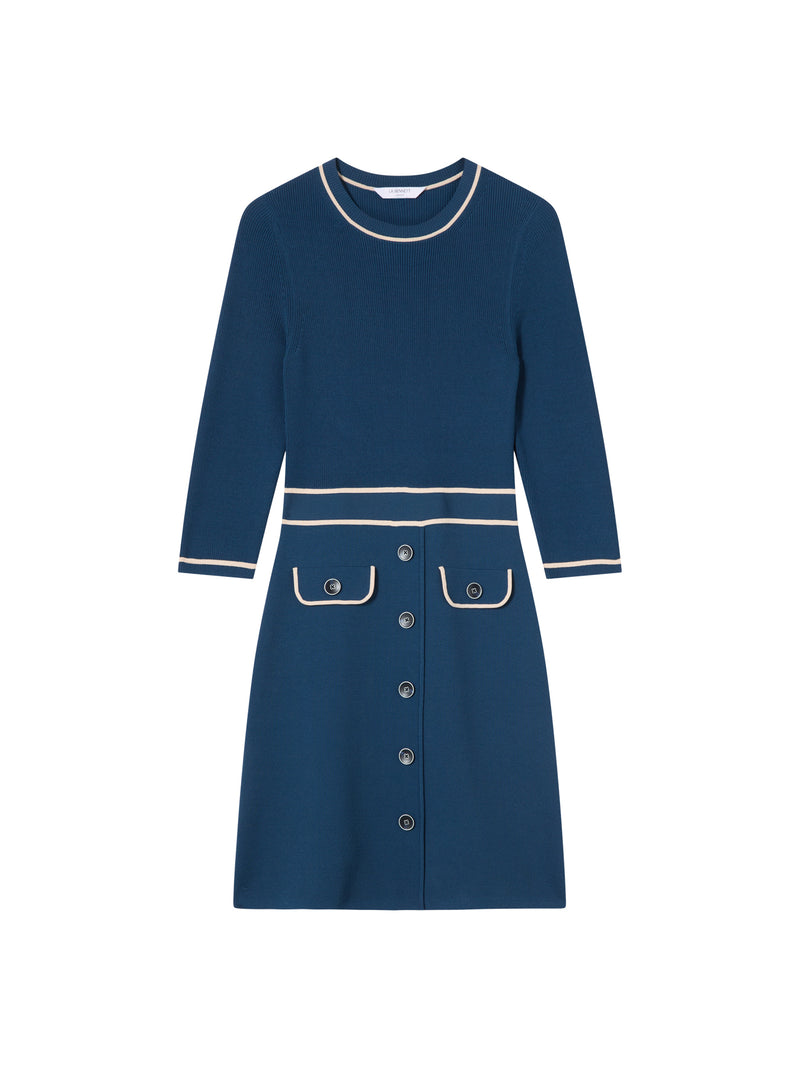 Ciara Viscose Blend Button Through Knit Dress Blue & Navy