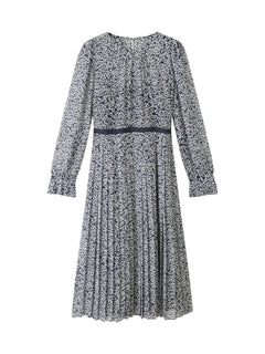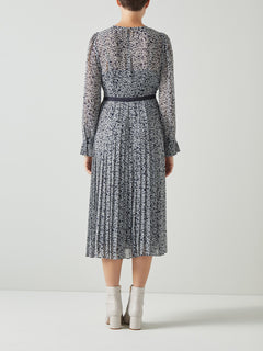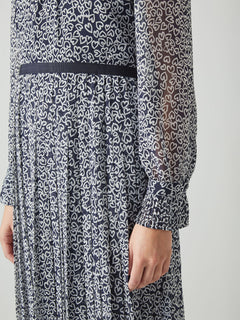 Estelle Navy And Cream Heart Print Pleated Dress