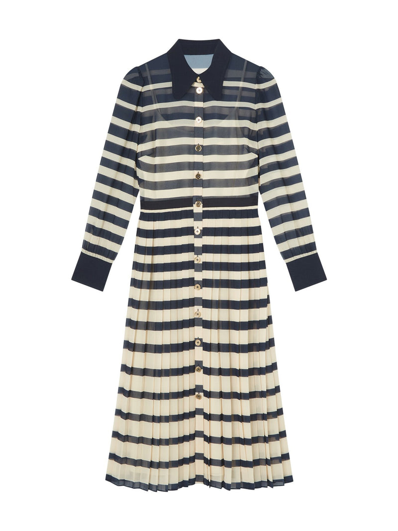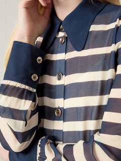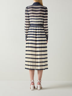 Tallis Spring Navy & Cream Placement Stripe Dress