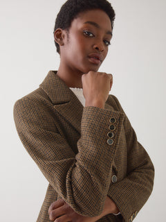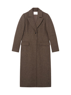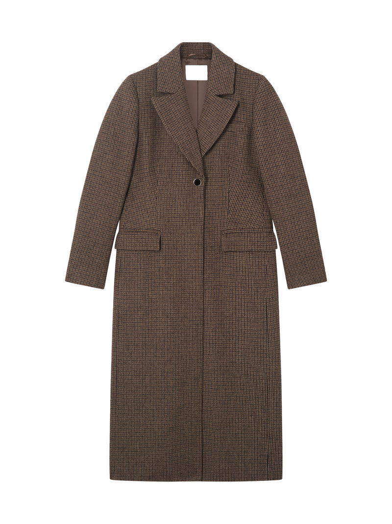 Dakota Mini Cheque Virgin Wool Single Breasted Coat Brown