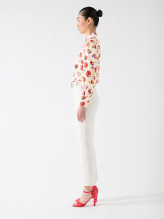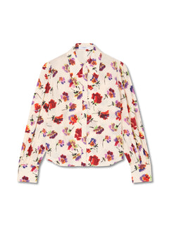 Cream Sonya Italian Straw Multi Silk Ikat Floral Silk Shirt
