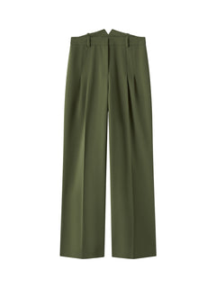 Petra Green Plain Polyester Pleat Front Notch Back Trousers