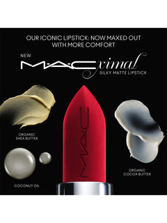 MAC's iconic Matte Lipstick is now bigger and better – with more colour, more comfort, more wear. The matte formula you know and love is upgraded to a silkier, smoother texture in pigment-rich hues – from iconic to new. Get more colour with full coverage, pigment rich payoff in our inclusive range of Artist approved shades. Get more comfort with a creamy blend of coconut oil, organic shea butter and organic cocoa butter that conditions and nourishes lips. Get more wear with 12 hours of colour from this long-lasting lipstick. The iconic matte Lipstick that changed the world we live in may have been reimagined, but each famous and fresh hue still serves up that signature vanilla scent you already love (or soon will).
