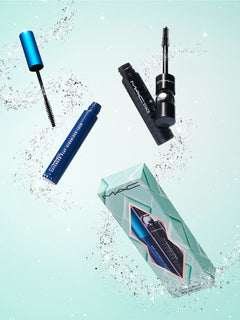 A two-piece mascara duo combining stacking volume with deep black payoff for customisable lash looks.