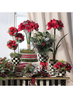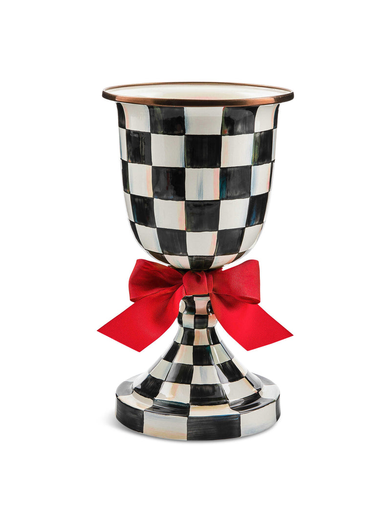 Courtly Check Enamel Pedestal Vase - Red Bow