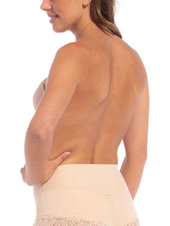 The Angel bra is made of two adhesive cups that are easy to stick onto your breasts. The bra gives you a nice push-up because of the front closure. The bra is fully open on the back and completely strapless. Take good care of the bra after wearing it by washing it with lukewarm water and letting it air-dry and you will see you can wear the bra many times!