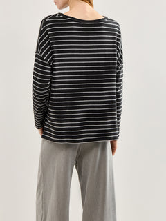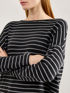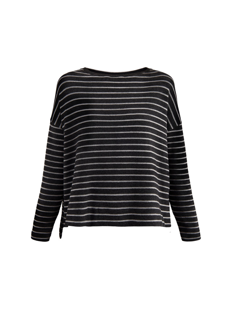 Boat Neck Stripe Jumper Grey